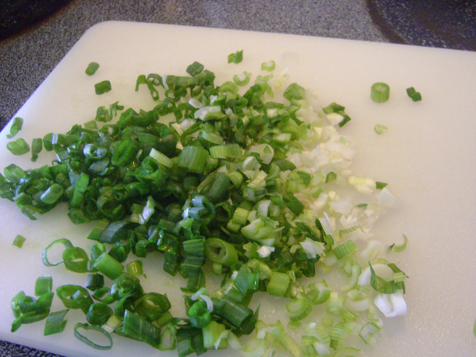 I started with 2 chopped green onions (you can add the bacon here if you have it)...